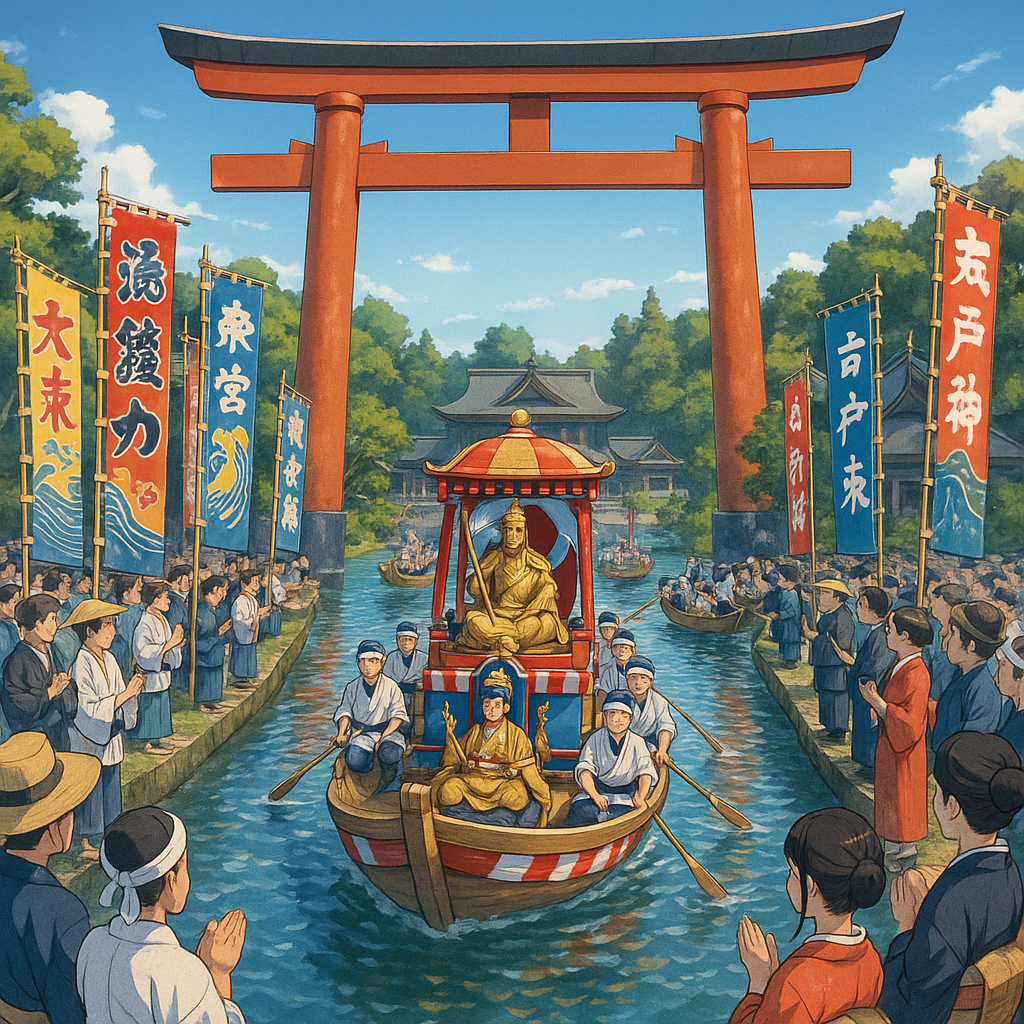 鹿島神宮では、12年に一度、午年に「御船祭(みふねまつり)」が執り行われます。武甕槌大神の御分霊を乗せた船団が、一の鳥居をくぐり、千葉県香取市加藤洲まで水路を進み、香取神宮の神職と水上での神事を行い、鹿島へと戻る、絢爛豪華な水上祭です。陸路と水路を合わせて約30kmにも及ぶ神幸行列は、まさに圧巻。この祭りは、鹿島神宮と香取神宮の深い繋がりを示すものであり、古来からの神々の交流を今に伝える貴重な行事です。