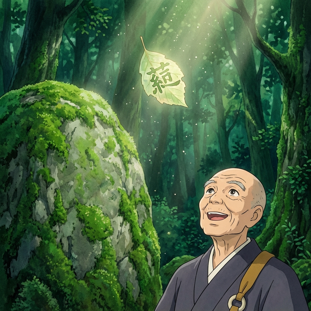 多賀大社に参拝した重源の前に、虫食い跡のある柏の葉が舞い落ちてきました。その跡をよく見ると「莚(えん)」という文字に見えました。これは「廿(二十)」と「延」を組み合わせたものと解釈され、彼は見事に20年の寿命を授かり、東大寺を完成させたといいます。